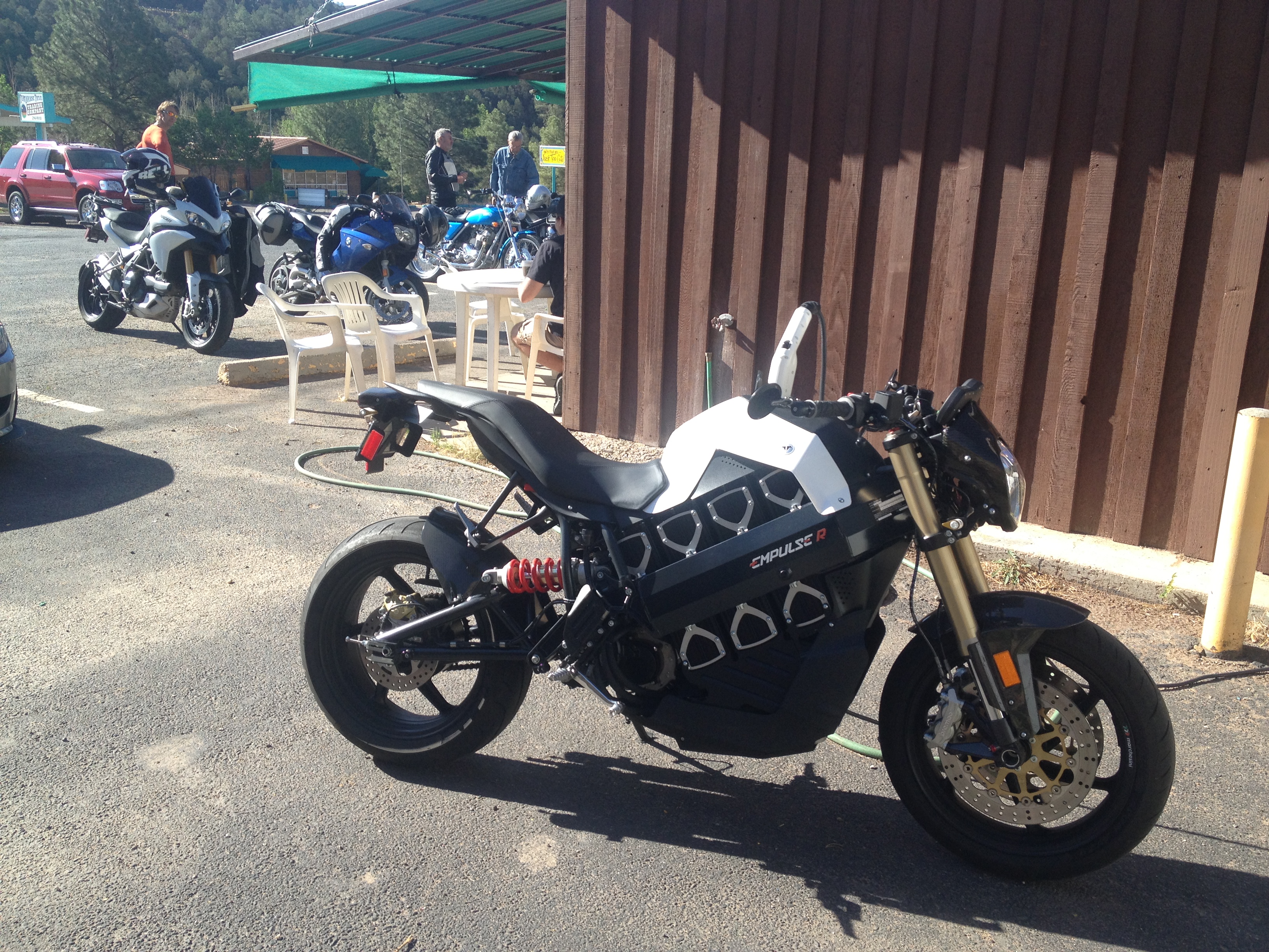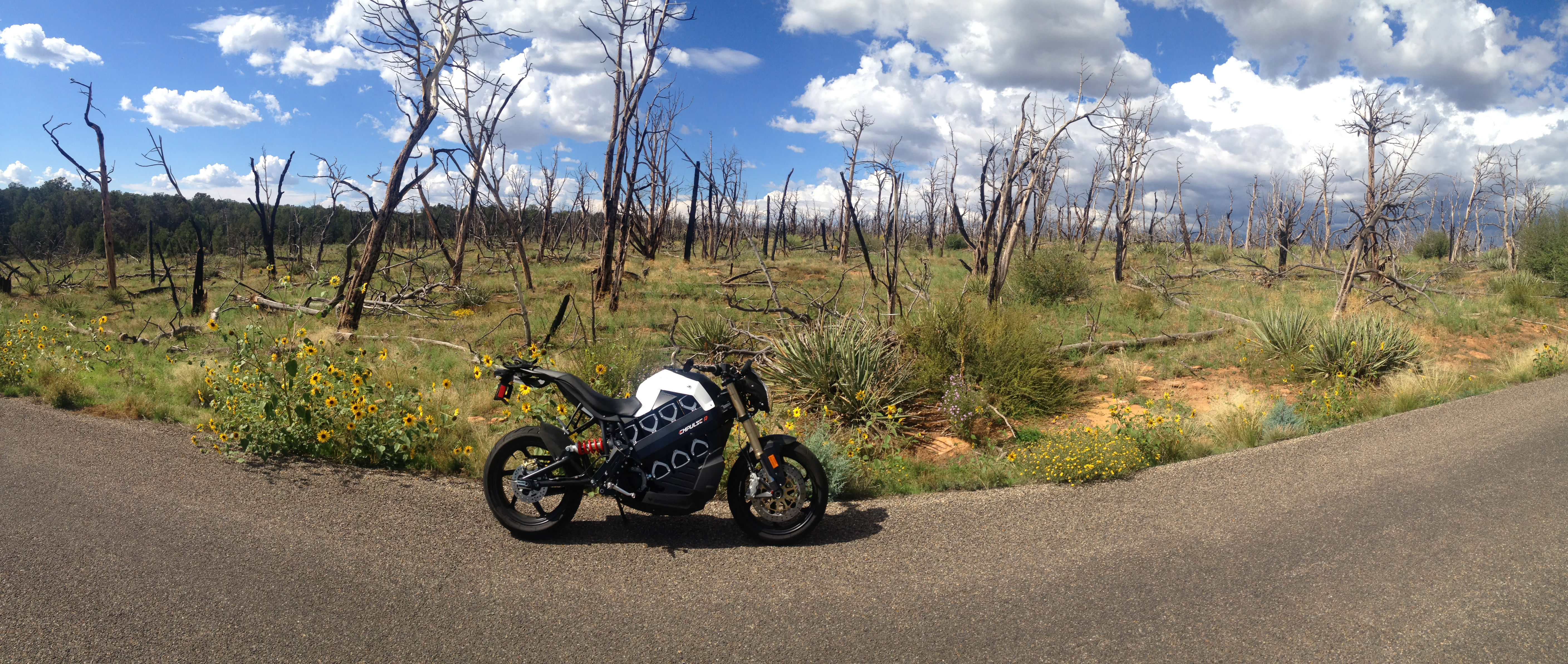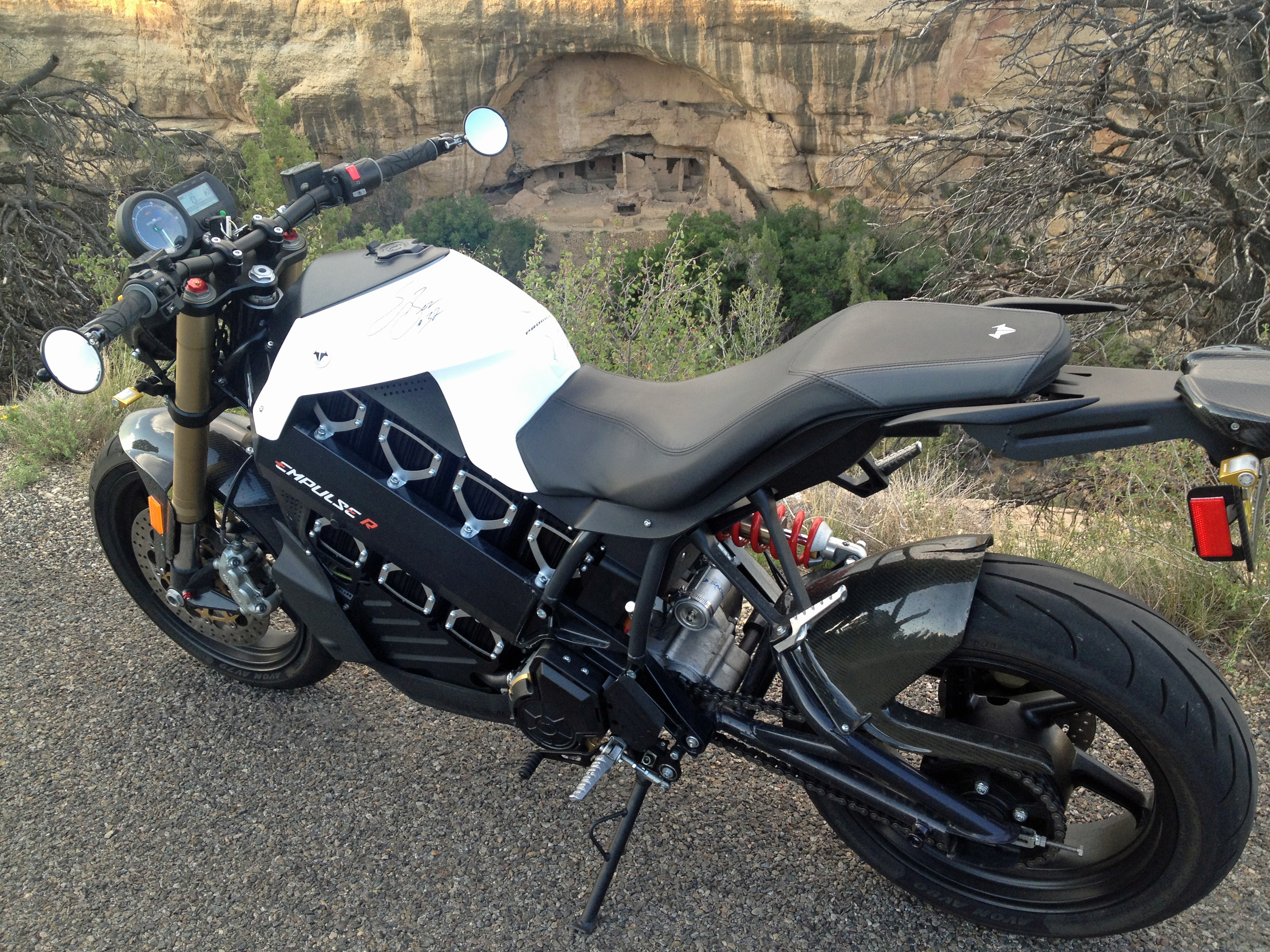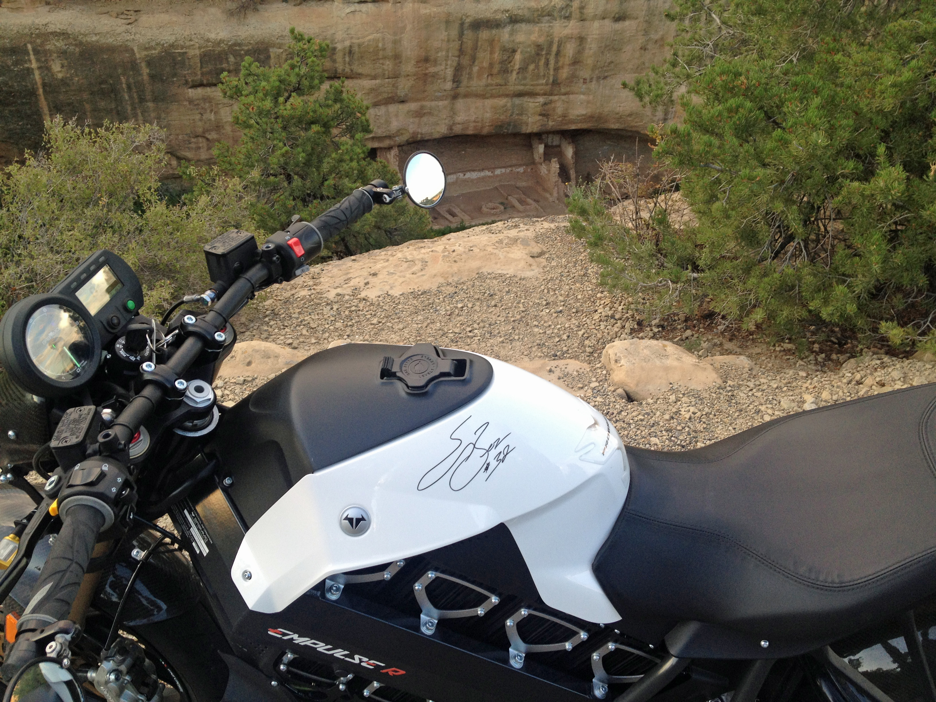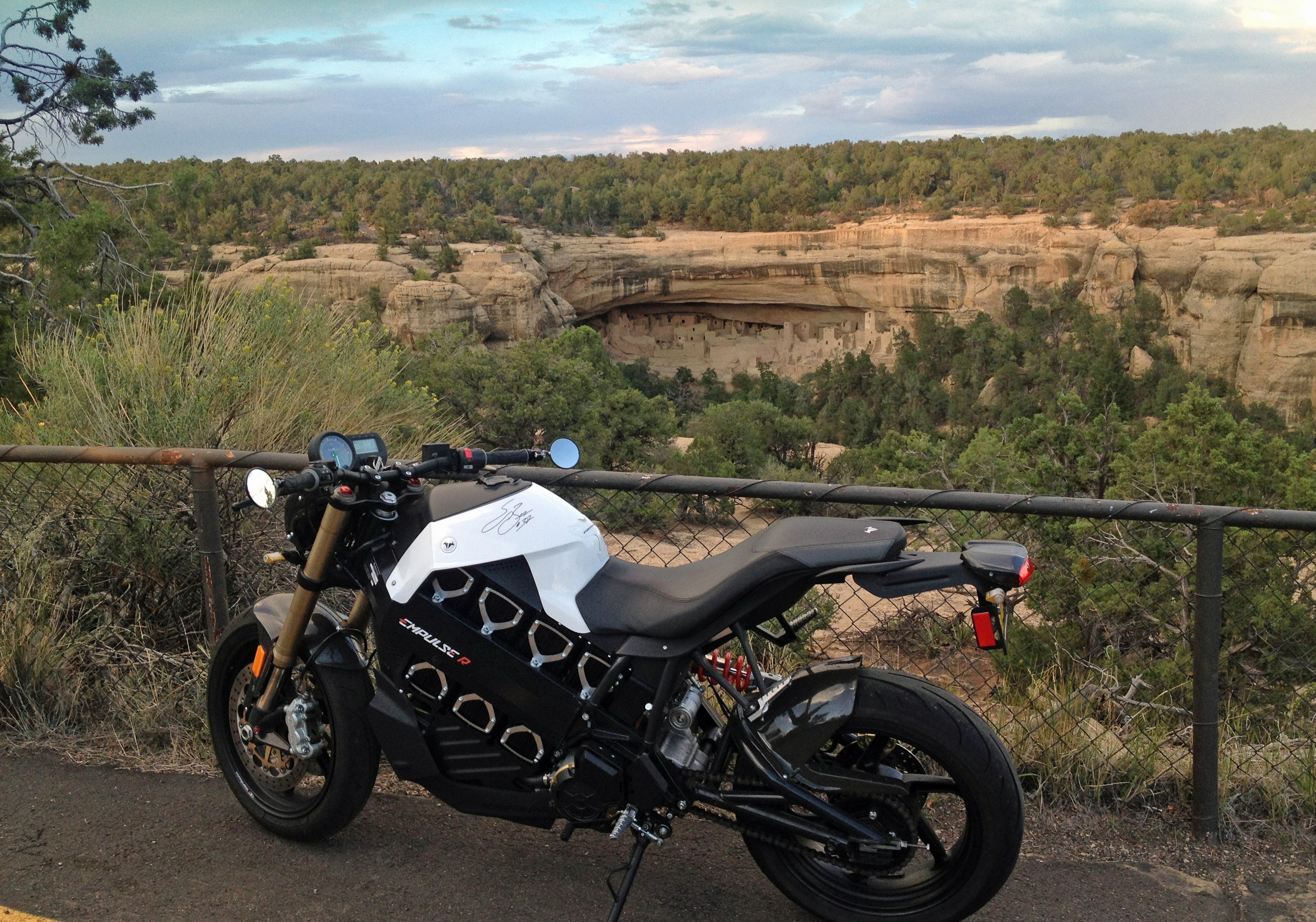 I mentioned about how nice it is to ride the electric motorcycle in nature. Example: early in the day when I was touring the Cliff Palace there was a group of Harleys parked up where the Empulse is in this photo. Well when they took off everybody in the tour turned and looked over as the Harleys were loud and suddenly they were part of our tour…or so it seemed. It’s not a horrid thing I guess, but it feels so much better to be moving so quietly through that place that the deer don’t even run from you.