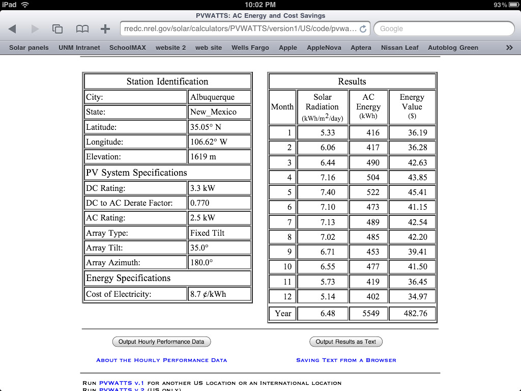 I was told by my installer these same numbers, that basically my system should produce around 5500kWh a year in energy here in Albuquerque. But they cautioned me that because of shading it will actually be around 5000, maybe a bit more.