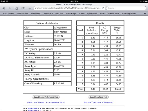 Ok. Will answer last question first. Installation: Was really quite effortless. Took a day and a half to get the panels up and installed. Then it was mostly a waiting game. The system needed to be inspected by the city. That took a week. The city wanted a small change. That was done the next day and reinspected the day after that. The system was green tagged, which means good to go, but the power on switch is then padlocked until PNM comes out to unlock it and flip the switch. That took 2 weeks. Gah…two weeks of the panels being hit by solar energy, but just doing nothing with it. Was sad, but it is what it is.