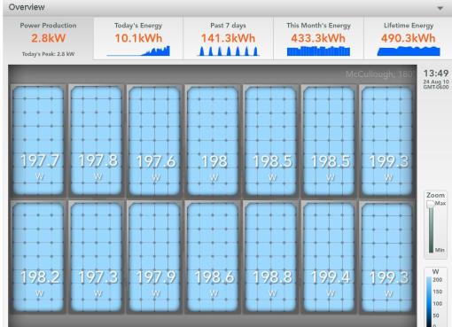 (see my daily production any time from the internet. Gawd I check this site way way WAY too many times each day.   http://enlighten.enphaseenergy.com/public/systems/gZBG6328 Every time I see “McCullough7000” I feel like a robot from the future.)