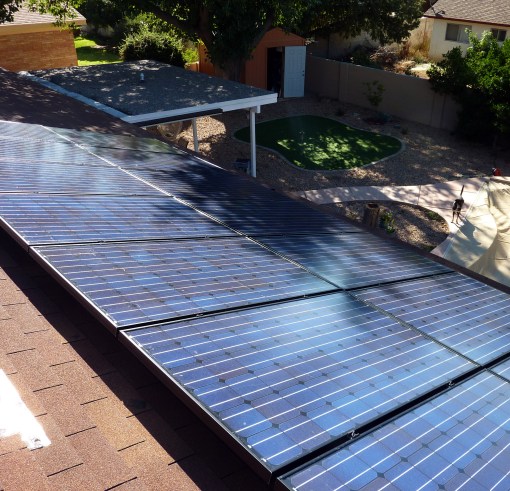 Ok, I wanted to talk a bit about the solar panels we had installed this July (actually end of July by the time PNM –the local electric company– came out and turned on the juice). Mostly because these panels have influenced many of my thoughts and plans about some future purchases (electric cars and electric bikes). Or maybe my plans of future electric cars influenced my decision to get solar panels in the first place. Gah, confusing in a “chicken or the egg” kinda way …and not overly important anyways 🙂 .
